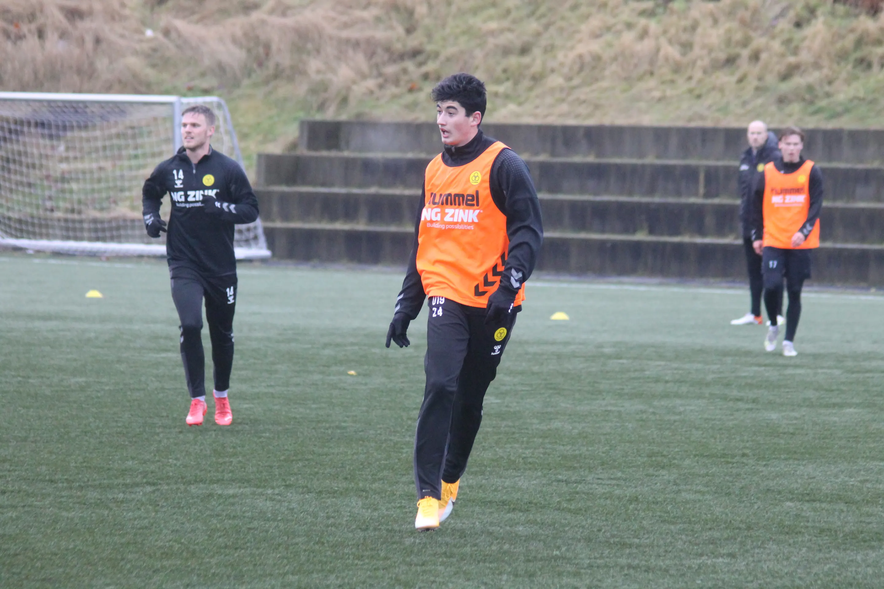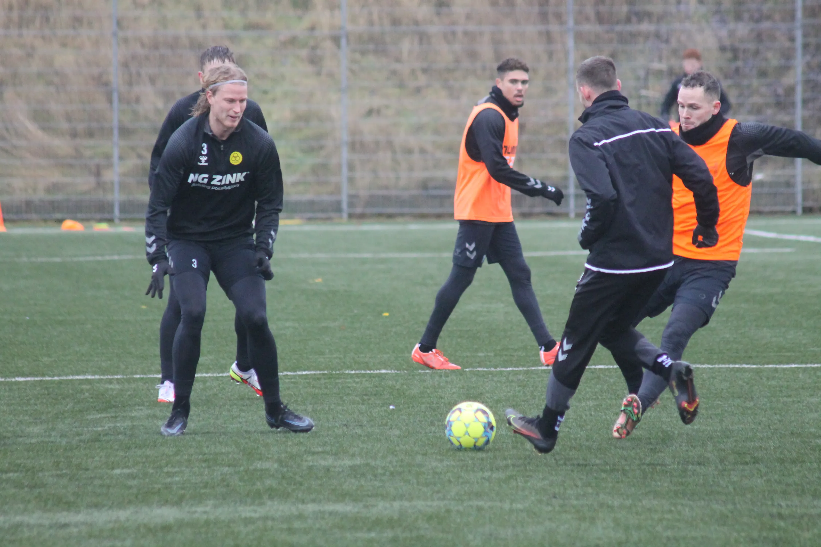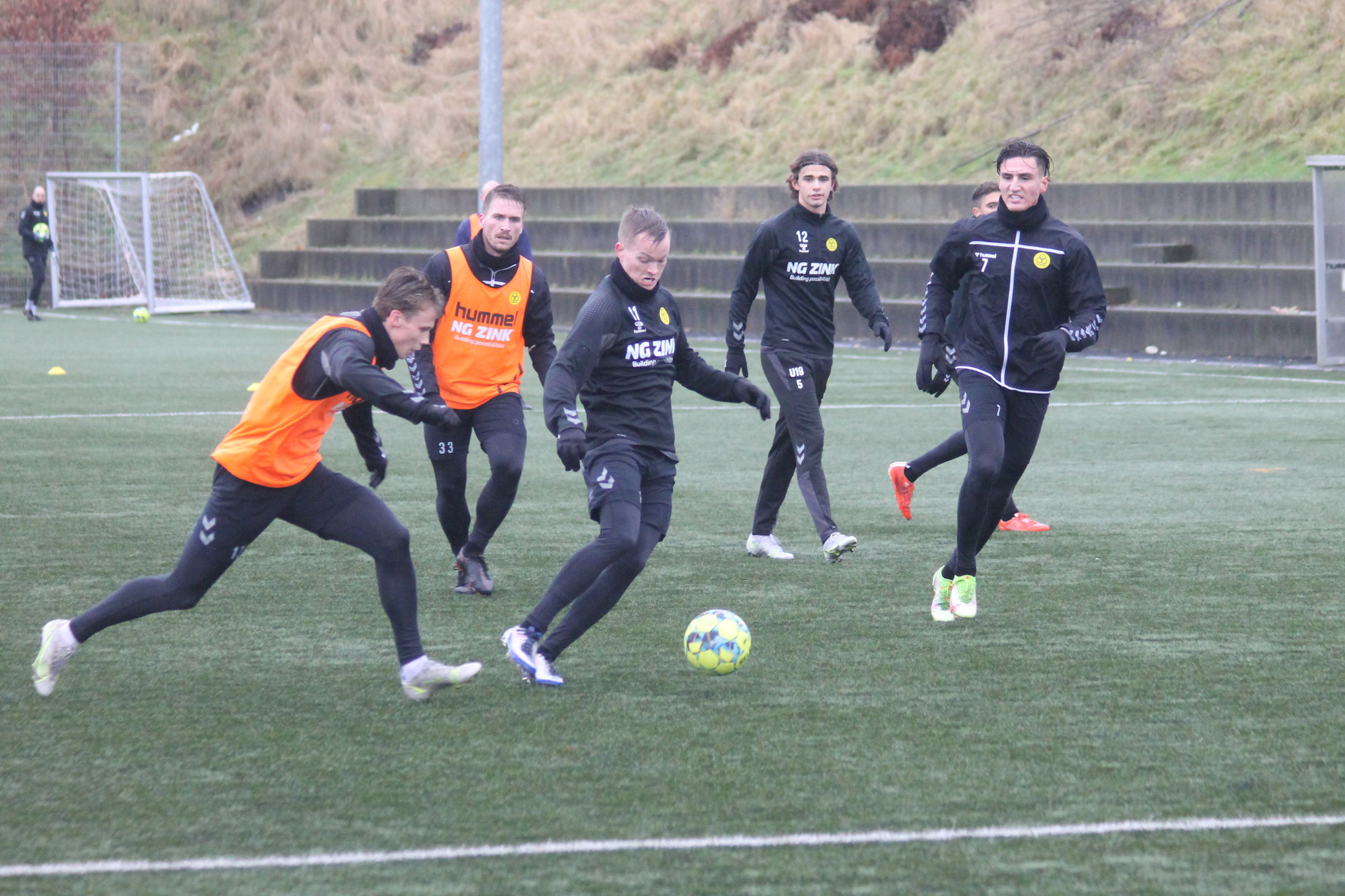 Der blev gået til stålet på kunstgræsset på bane 2, og spillerne havde selskab af Lukas Wagner og Jashar Beluli, der begge er en del af U19-mandskabet. Jonas Thorsen indgik i træningen sammen med holdkammeraterne, inden han gik over til at træne med klubbens fysiske træner Sebastian Dam.