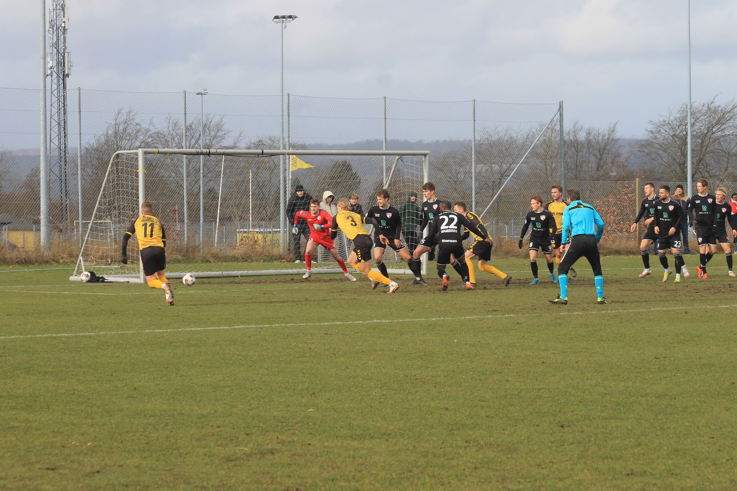 I første halvleg var den gule defensiv bomstærk mod et FC Fredericia-mandskab, der blev holdt i et jerngreb, og i den anden ende manglede de sidste gram i de afgørende situationer. I det 11. minut sendte Magnus Riisgaard Jensen Lirim Qamili afsted i dybden med et kraftfuldt hovedstød, og Qamili trykkede af, men han måtte se målmanden redde med en fodparade.
