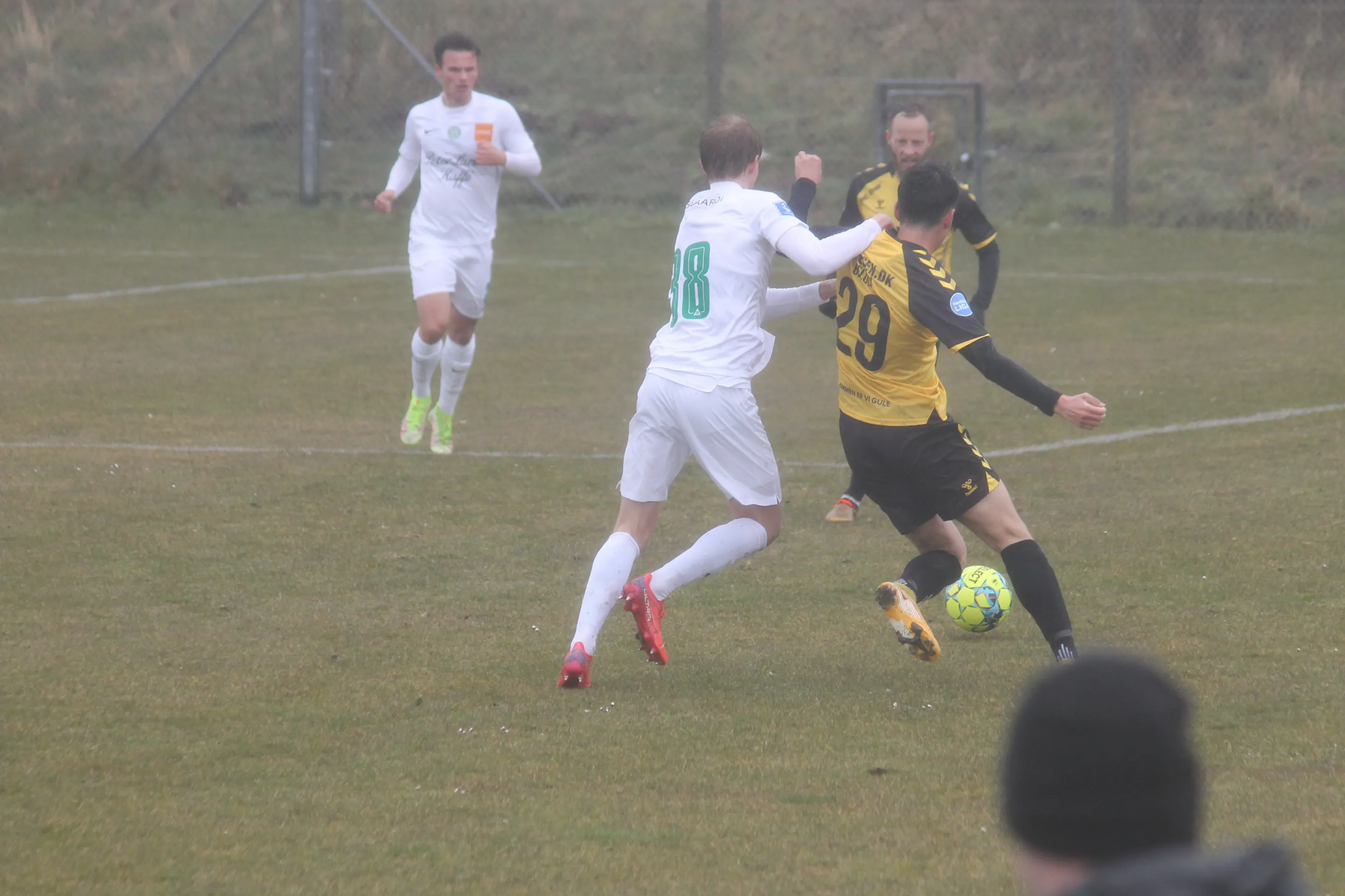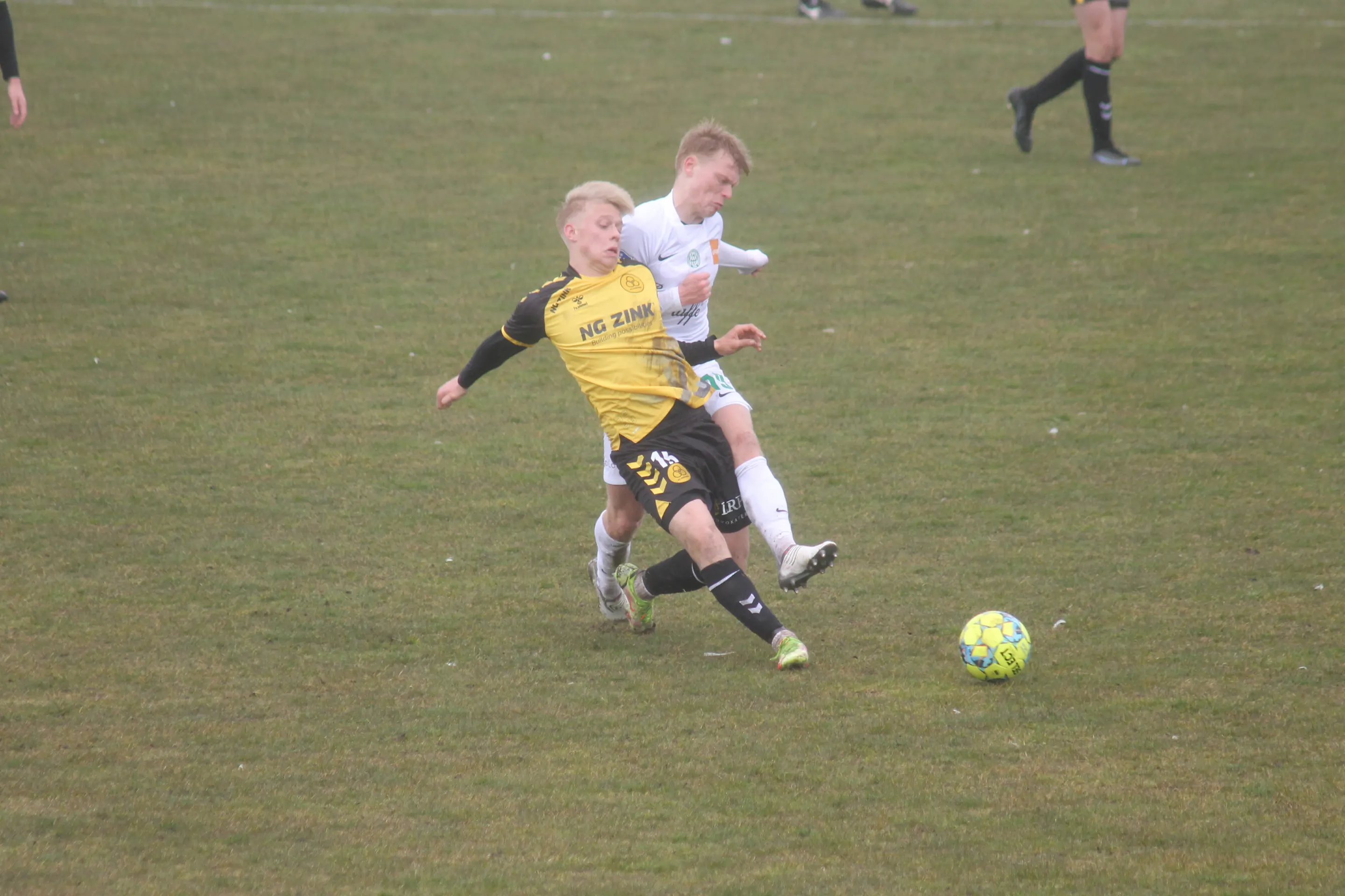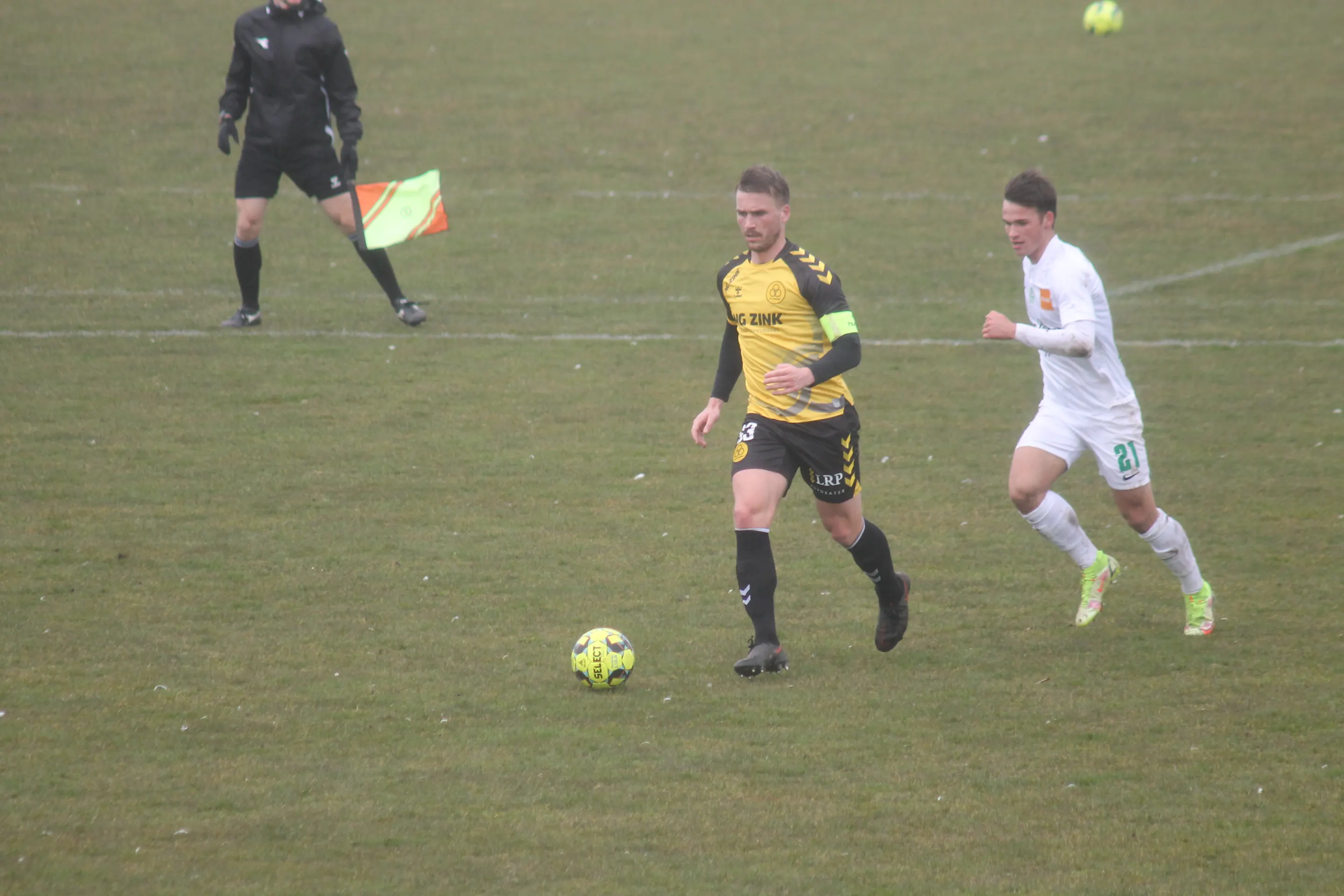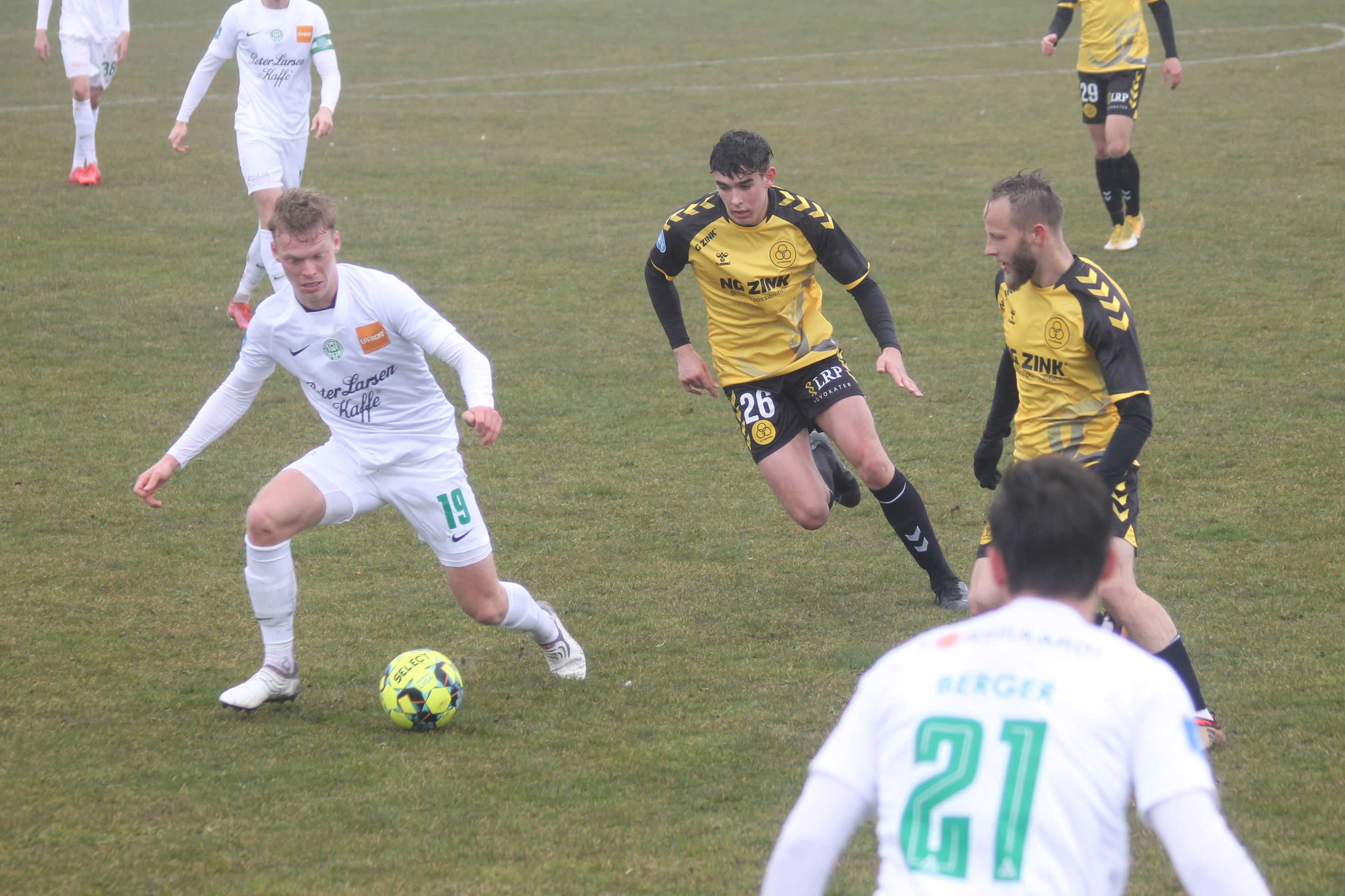 De gule værter viste fine takter allerede efter en håndfuld minutter, da Tonny Brochmann fandt Lirim Qamili i højre side, og Qamili satte turboen til og afsluttede, men desværre forbi kassen. I den anden ende havde Marcus Bobjerg en fin redning efter 10 minutter.