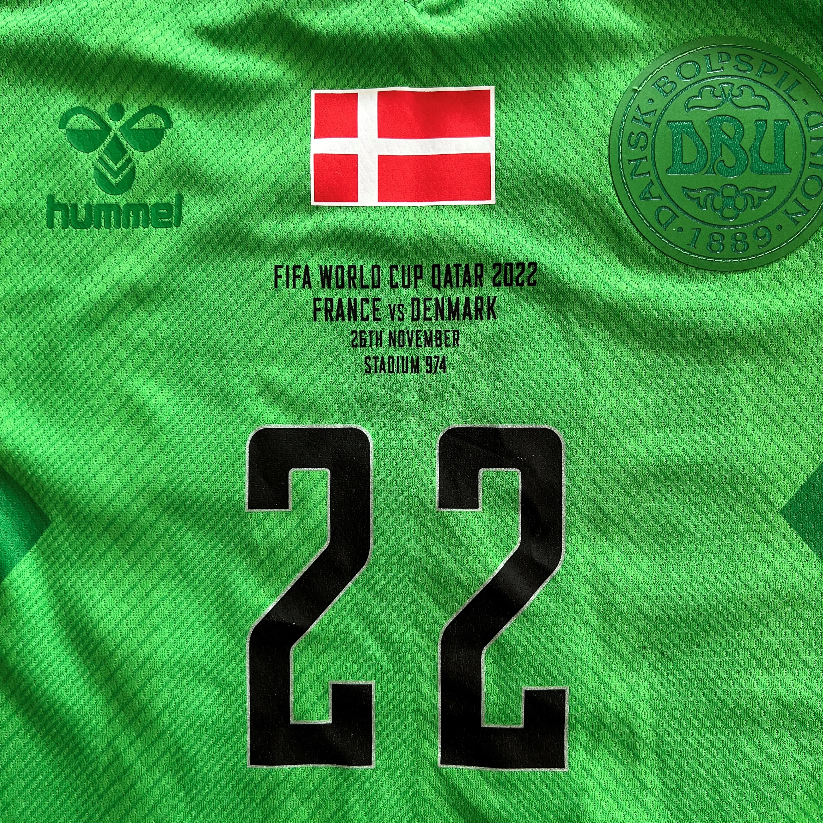 Det drejer sig om Frederik Rønnows originale trøje fra kampen mod Frankrig den 26. november 2022 fra VM i Qatar.