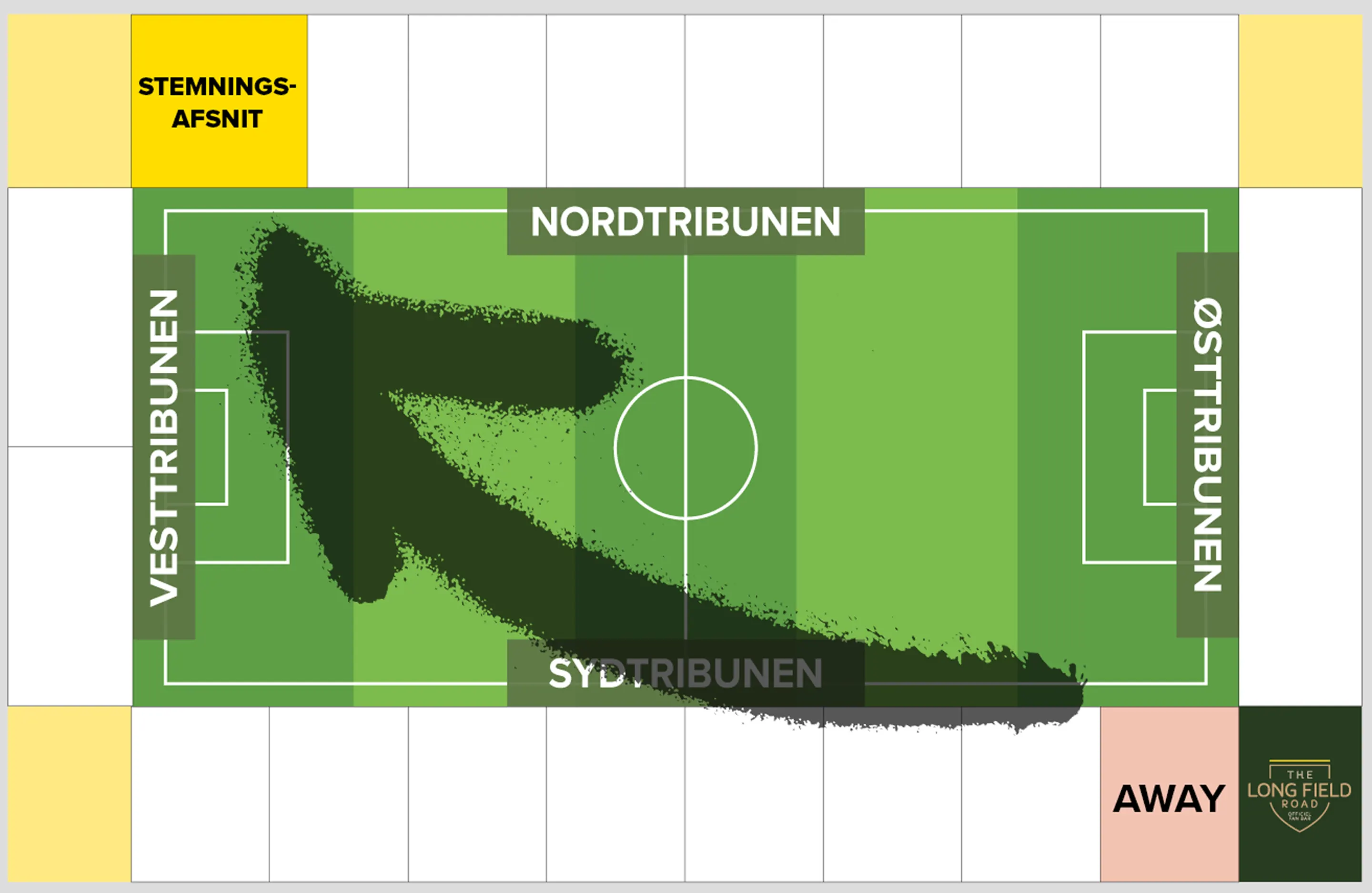Den nye placering af stemningsafsnittet betyder, at udeholdets fans fremadrettet får pladser i det sydøstlige hjørne – altså hvor de gule fans har stået i stemningsafsnittet indtil nu.