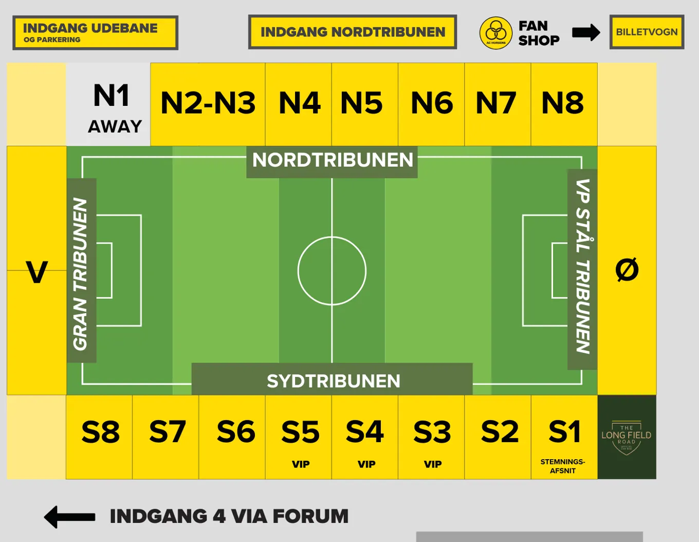 Info omkring stadionfaciliteter på Hybel Arena Horsens.
